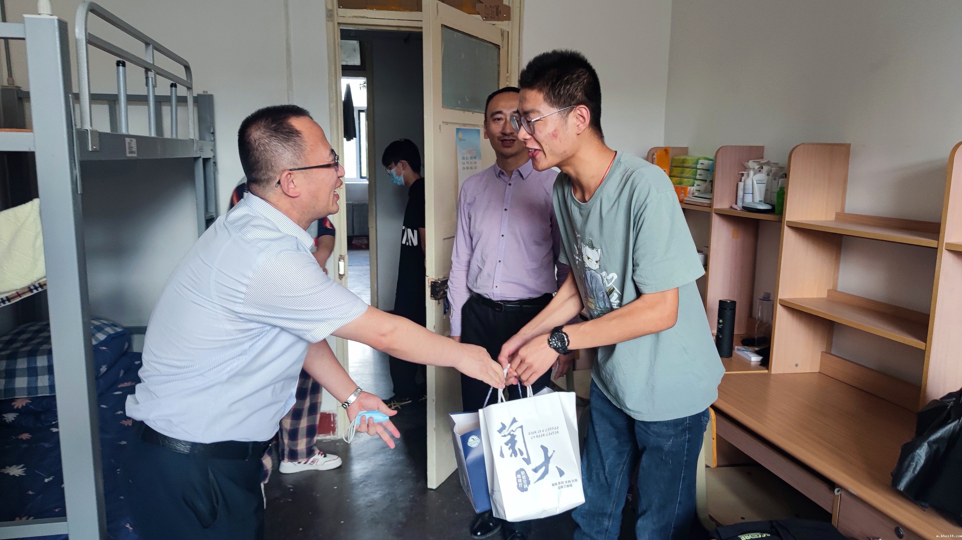 9月9日下午中秋佳节来临之际,为了解2022级研究生入校后学习生活情况,表达学院对新生的关怀和祝福,学院党委书记刘映琦,党委副书记、副院长王笳舟,研究生辅导员李继红等走访了2022级研究生宿舍。